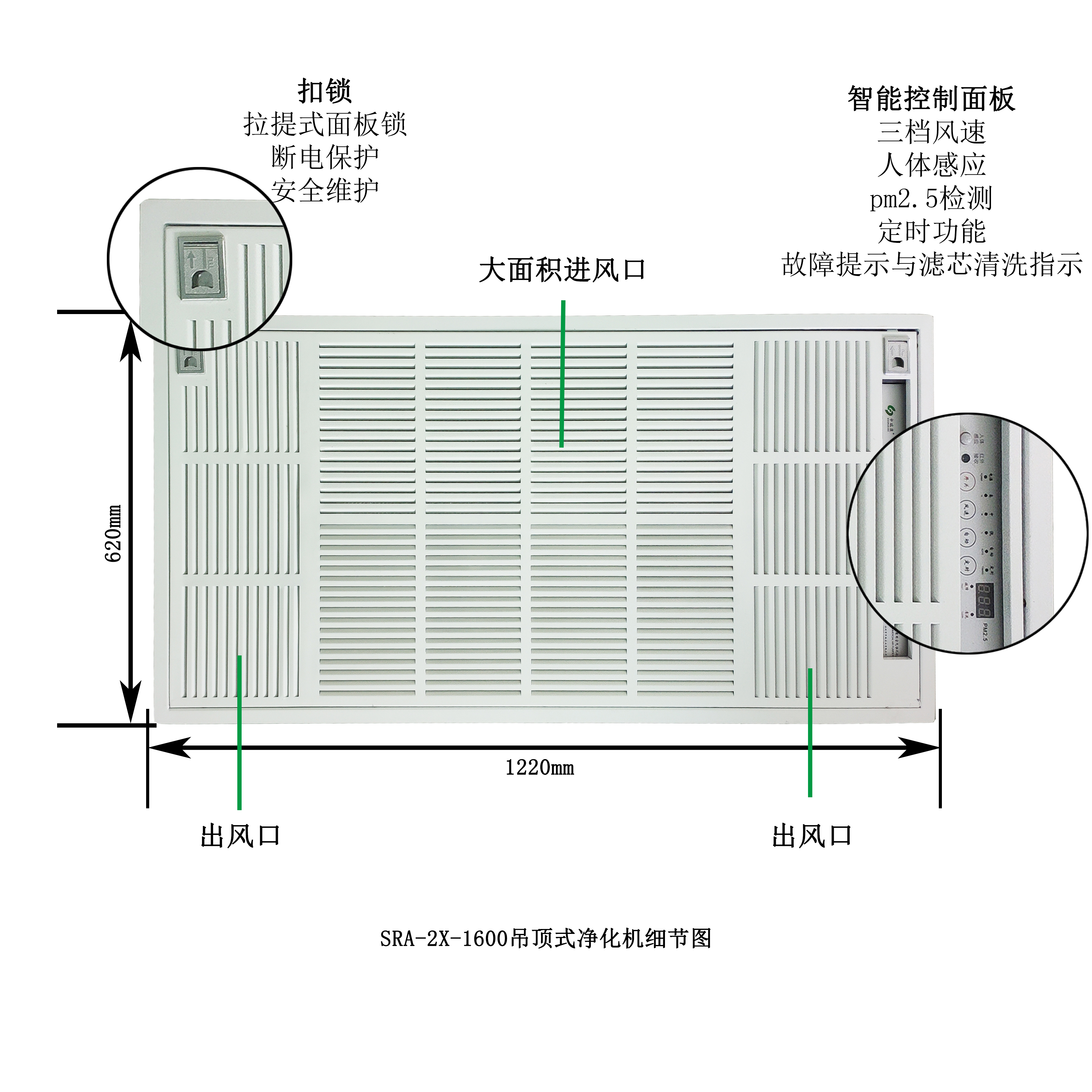 SRA吊頂式空氣凈化機,獨立凈化,無需外排,不用鋪設(shè)管道。通過凈化機內(nèi)置電機,氣流從進風(fēng)口吸入,進行凈化處理后,潔凈空氣直接循環(huán)在室內(nèi),持續(xù)凈化。 該凈化機可完全消除空氣中直徑大小為0.01μm的香煙煙霧、細菌、飄塵等有害物,有效去除空氣中的臭味、異味等,空氣濾凈效果達99%以上。