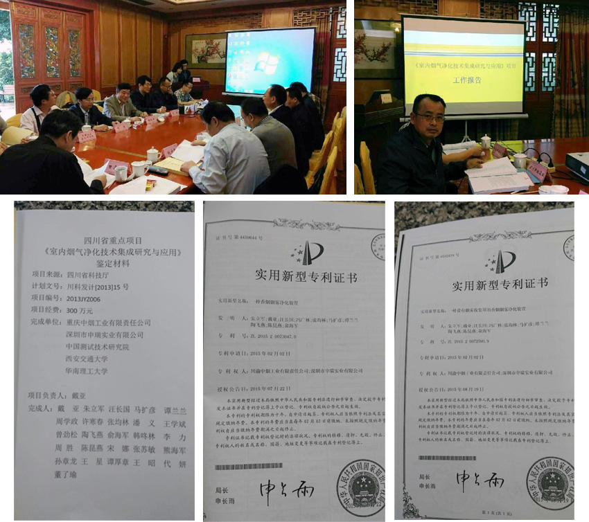歷時三年,深圳市申瑞實業(yè)有限公司與川渝中煙公司聯(lián)合研制的香煙煙霧凈化新材料及新型凈化設(shè)備獲國家專利,并經(jīng)重慶市科委組織的專家委員會評審?fù)ㄟ^,成功申報國家科技成果獎! 工匠精神, 與君共勉! 祝賀!
