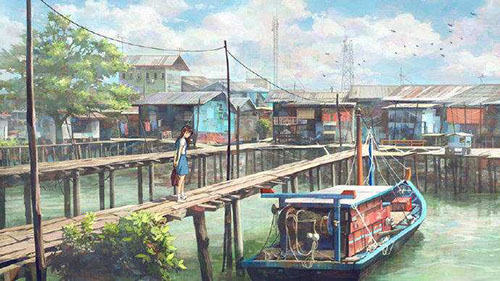 | 遠(yuǎn)方的天一絲絲微亮了起來。是魚肚的浮白,一層層淡淡地從啟明星邊的灰藍(lán)中褪了出來,淡金色的微光散在云邊。小趙拉開酒紅色的簾子,昂著頭,就那么靜靜地站著。絲簾垂在兩邊,框住了這嶄新的、朦朧的一切。 小趙的舊靴子在接連幾天的暴雨轟擊下終于開了膠。她拖著四下離散的鞋底往教室踱去,凌晨5點半,她熱愛這孤獨的時刻,這讓她覺得自己與別人不一樣。每個人都不甘平凡的吧,她想。雨水混著污水汩汩地在下水道悶聲流著,摻著河里凈化水質(zhì)用的噴泉傾灑的聲音,竟也顯得不那么陰暗了。只是下水道早已被不知名的塑料袋或是一些其他異物堵住了,豁口不夠呼吸,于是那些污水和其余發(fā)臭的垃圾一起,回旋上升,然后匯成一團黃白色的液體緩緩浮上來。像是免疫時傾瀉出的膿液,昭示著克服感染的成果,或是被同化的結(jié)果。汩汩地流著,一層一層慢慢涌上來,似乎要把小趙吞沒。那些異物,不斷的,發(fā)黃的,淌著血液的,骯臟的,又是誰的?